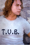 Foto che ritrae il cantante con la maglietta singolare di t.v.b. canzone ai vertici delle classifiche dello scorso luglio. |